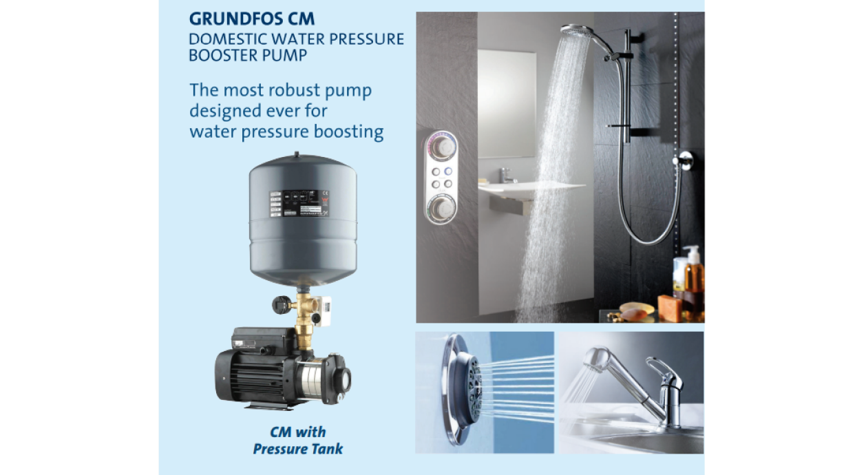 For domestic water supply a water booster pump is designed to increase pressure in a water system in order to provide sufficient water flow and pressure to consumers. Low pressure often occurs in residential buildings during peak system usage, for instance in the mornings and evenings when most people shower and cook. But it also occurs when multiple taps in the home are open.Low or varying water pressure is very common in one- or two-family homes. This results in low-pressure showers and trickling taps something that significantly reduces the comfort of the homeowner.